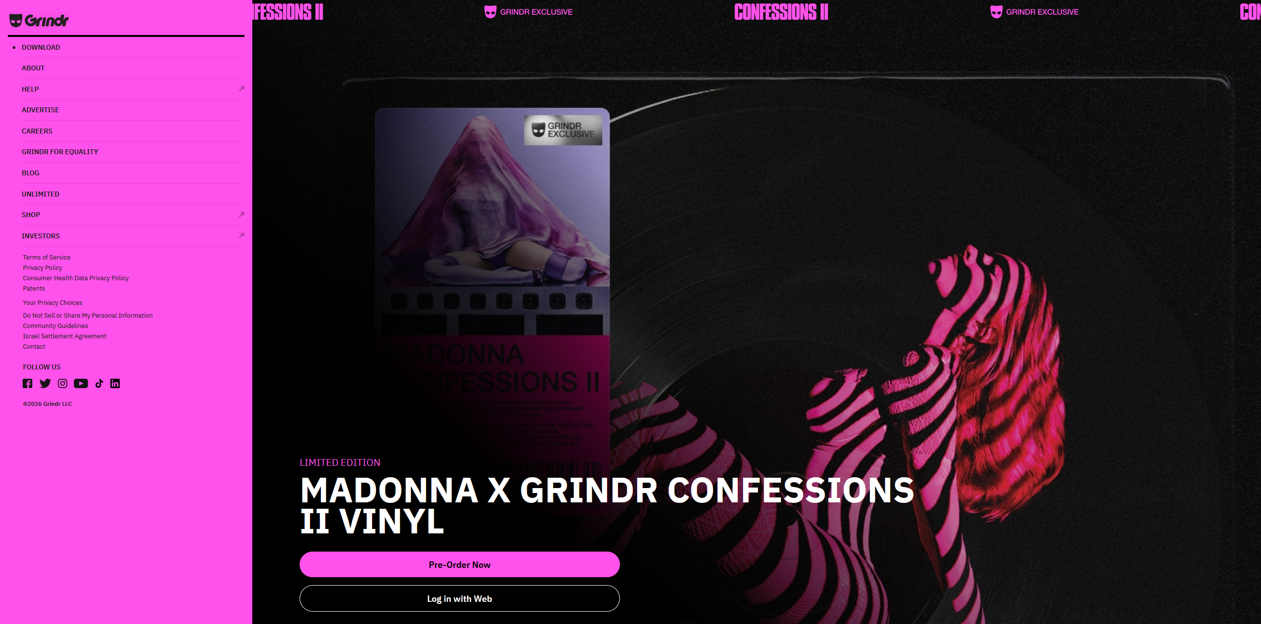Das überraschte selbst hartgesottene (schwule) Fans. All diejenigen, die die Dating-App Grindr nutzen, hatten plötzlich zwischen den Profilen anderer User auch einen User namens Madonna. Und auch auf der Webseiten-Version war sie prominent zu sehen. Es stellt sich heraus, dass es eine weitere Version ihres kommenden Albums Confessions II geben wird, nämlich die „Exxxclusive Picture Disc Vinyl„.